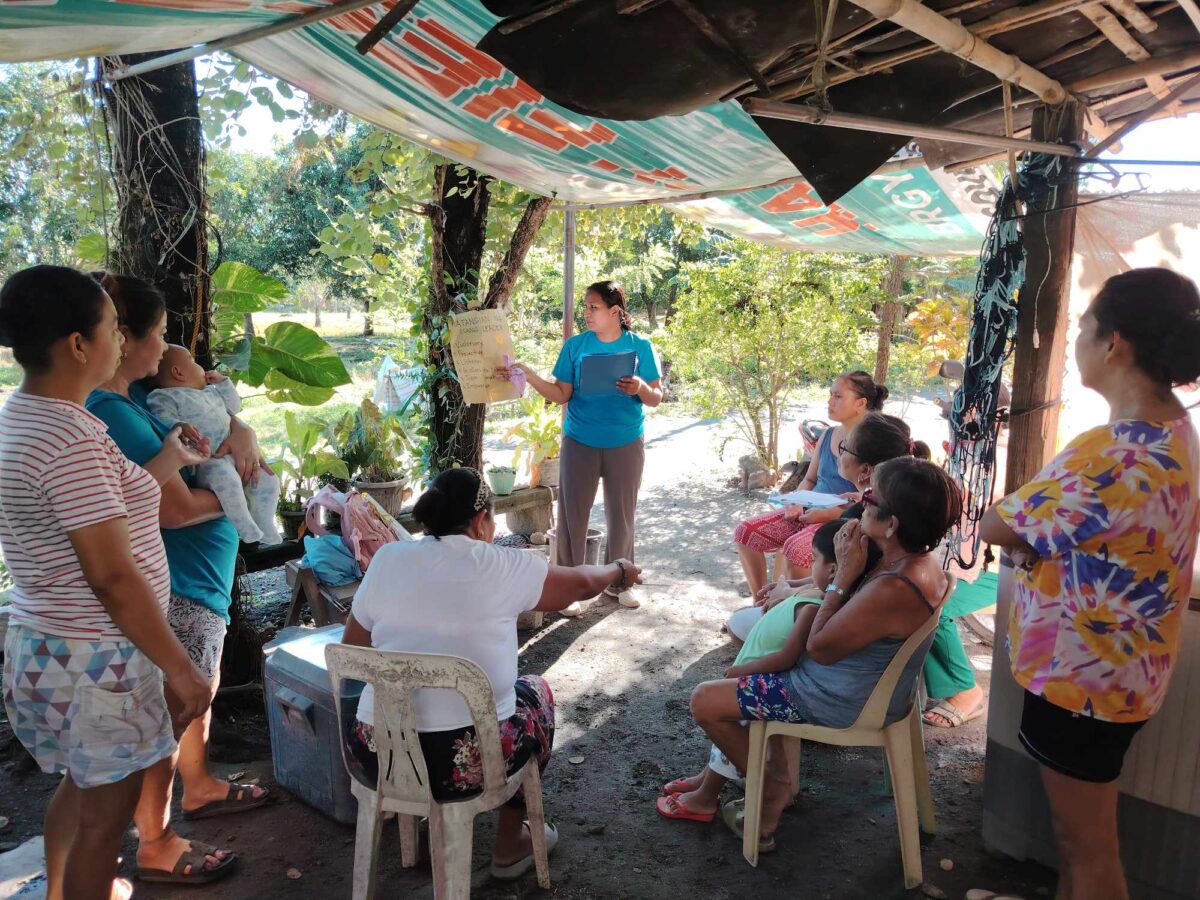 For example, with physical distance, it is not easy to gather the CHWs for training. “There are times when the vehicle of the barangay is unable to fetch the CHWs for the capacity-building activities we have,” Geralyn shared. (Dahil sa layo ng kanilang lokasyon, may mga pagkakataon na hindi sila mapuntahan ng service ng barangay kapag may mga pagsasanay na gagawin.)